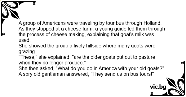 She then asked, "What do you do in America with your old goats?"
