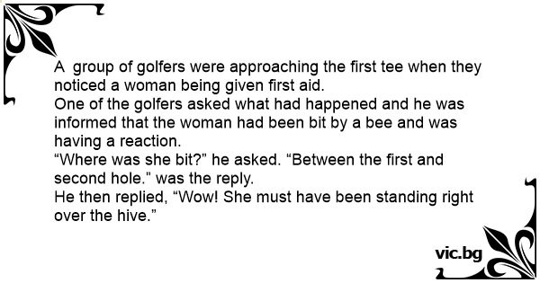 One of the golfers asked what had happened and he was informed that the woman had been bit by a bee and was having a reaction.