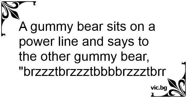 A gummy bear sits on a power line and says to the other gummy bear, "brzzztbrzzztbbbbrzzztbrrrrzt"