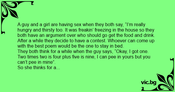 After a while they decide to have a contest. Whoever can come up with the best poem would be the one to stay in bed.