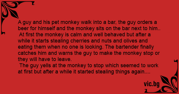 At first the bartender said no but the guy assured him that he had been training the monkey to behave better and promised there would be no trouble.
