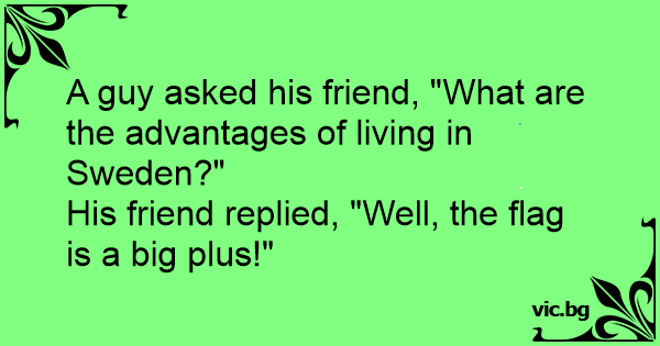 A guy asked his friend, "What are the advantages of living in Sweden?"