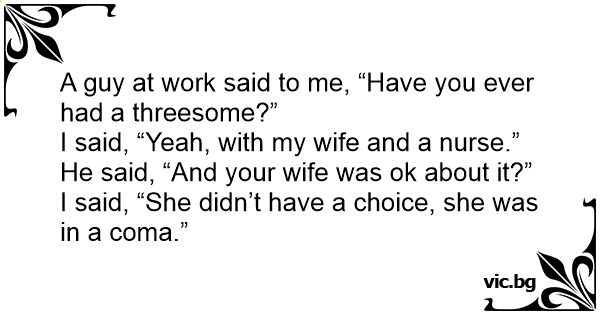A guy at work said to me, “Have you ever had a тhrееsоме?”