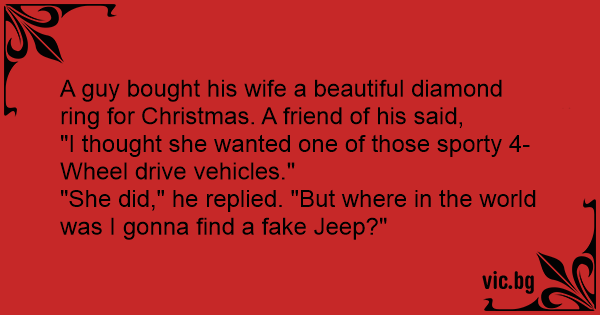 A guy bought his wife a beautiful diamond ring for Christmas. A friend of his said,