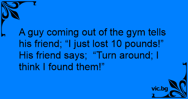 A guy coming out of the gym tells his friend; “I just lost 10 pounds!”