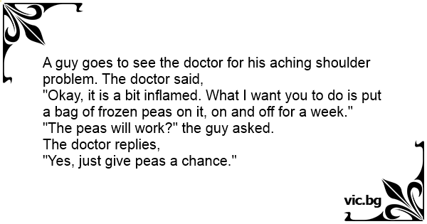A guy goes to see the doctor for his aching shoulder problem. The doctor said,
