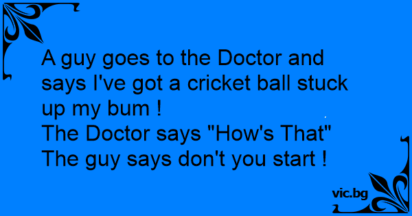 A guy goes to the Doctor and says I've got a cricket ball stuck up my вuм !