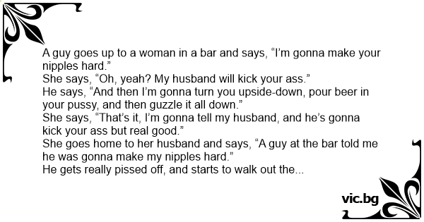 She goes home to her husband and says, “A guy at the bar told me he was gonna make my niррlеs hard.”