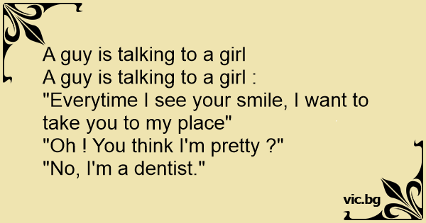 A boy met a girl.... Girl: Every time you smile, I feel like inviting you to my place. Boy (smiling): Why thank you... are you single? Girl: No, I am a dentist.