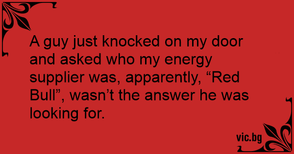 A guy just knocked on my door and asked who my energy supplier was, apparently, “Red Bull”, wasn’t the answer he was looking for.