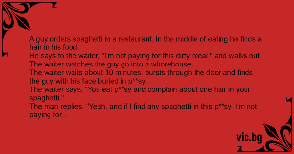 The waiter says, "You eat p**sy and complain about one hair in your spaghetti."