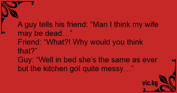 A guy tells his friend: “Man I think my wife may be dead…”