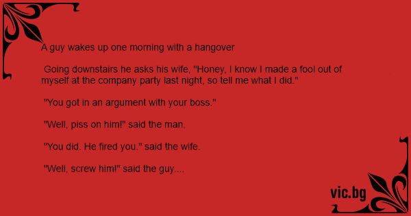 Going downstairs he asks his wife, "Honey, I know I made a fool out of myself at the company party last night, so tell me what I did."