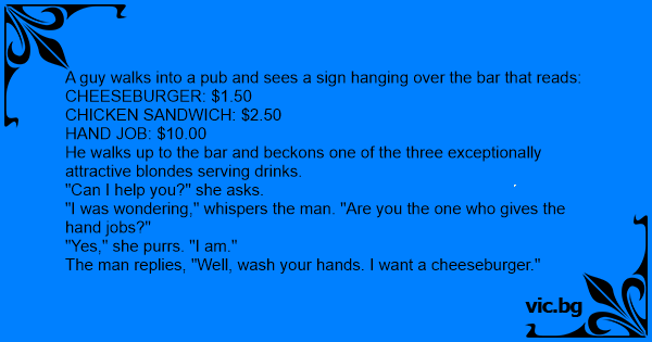The man replies, "Well, wash your hands. I want a cheeseburger."