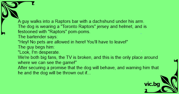 A guy walks into a Raptors bar with a dachshund under his arm.