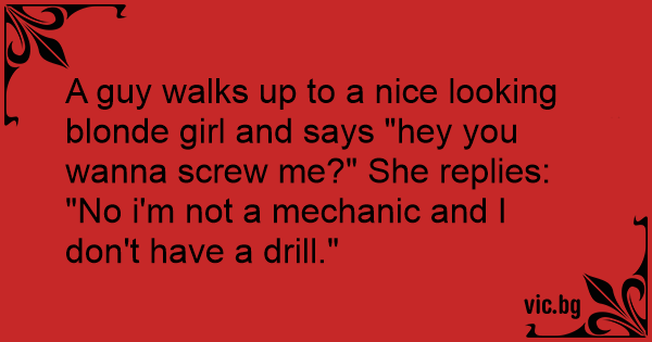 A guy walks up to a nice looking blonde girl and says "hey you wanna sсrеw me?" She replies: