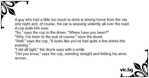 "Well," says the cop, "It looks like you've had quite a few drinks this evening."