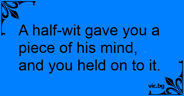A half-wit gave you a piece of his mind, and you held on to it.