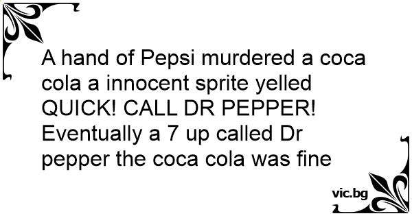 A hand of Pepsi murdered a coca cola a innocent sprite yelled QUICK! CALL DR PEPPER!