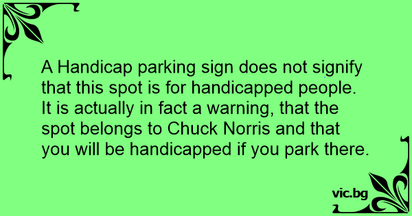 It is actually in fact a warning, that the spot belongs to Chuck Norris and that you will be handicapped if you park there.