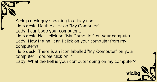 Help desk: No... click on "My Computer" on your computer.