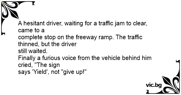 Finally a furious voice from the vehicle behind him cried, "The sign