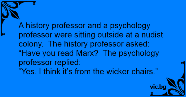 A history professor and a psychology professor were sitting outside at a nudist colony. The history professor asked: