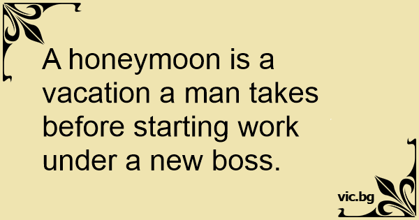 A honeymoon is a vacation a man takes before starting work under a new boss.
