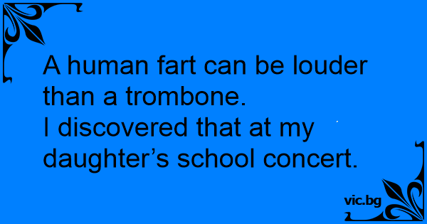 A human fаrт can be louder than a trombone.<br />I discovered that at my daughter’s school concert.