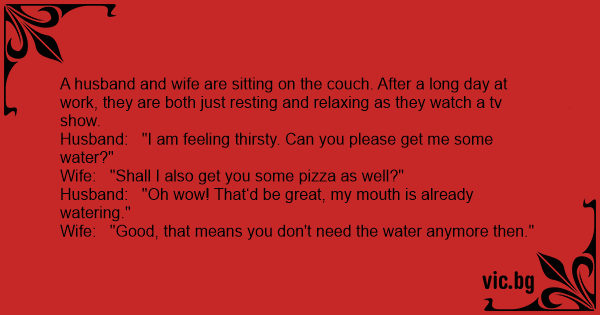 Husband: "I am feeling thirsty. Can you please get me some water?"