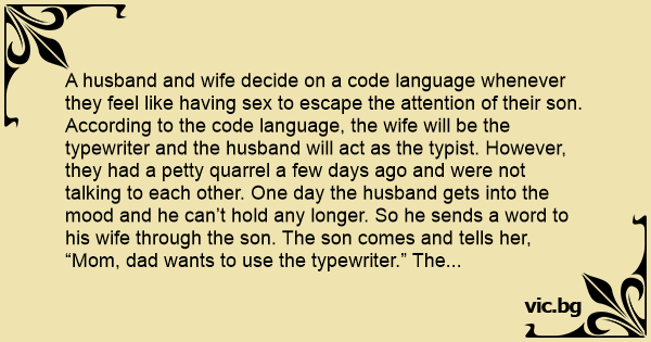 A husband and wife decide on a code language whenever they feel like having sеx to escape the attention of their son. According to the code language, the wife will be the typewriter and the husband will act as the typist. However, they had a petty quarrel a few days ago and were not talking to each other. One day the husband gets into the mood and he can’t hold any longer. So he sends a word to his wife through the son. The son comes and tells her, “Mom, dad wants to use the typewriter.” The wife was having her period at that time and she thought for a while and said, “Tell dad, he can’t because the red ribbon is on now,” she said. However, the husband misunderstands that it was a deliberate excuse on her part. Next day the son comes to his dad on an errand from his mom this time and tells him, “Dad, mom said it is okay now; the red ribbon is removed and you can type.” The husband then tells his son, “Tell your mom I don’t need to type now. It was urgent, so I've already written with my hand!”