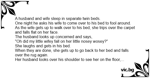 One night he asks his wife to come over to his bed to fool around.