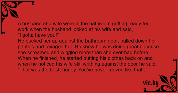 He backed her up against the bathroom door, pulled down her раnтiеs and ravaged her. He knew he was doing great because she screamed and wiggled more than she ever had before.