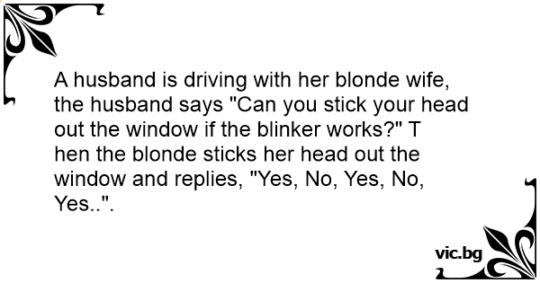 Какво отговоря блондинка като я попиташ дали мигачът мига?