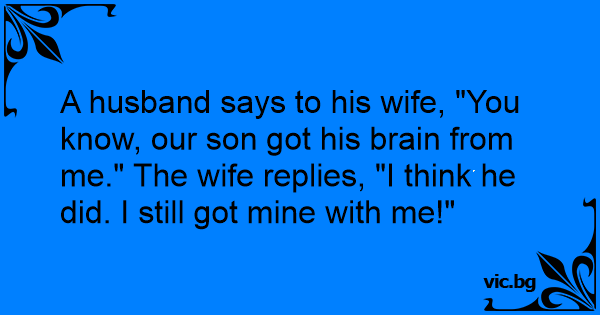 A husband says to his wife, "You know, our son got his brain from me." The wife replies, "I think he did. I still got mine with me!"