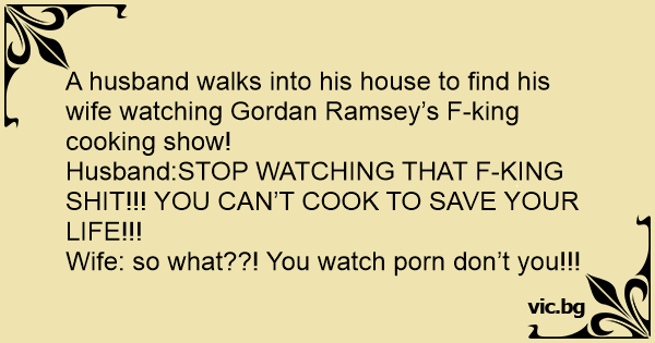 A husband walks into his house to find his wife watching Gordan Ramsey’s F-king cooking show!