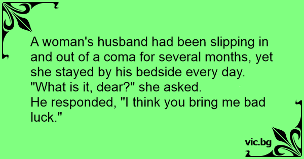 A woman's husband had been slipping in and out of a coma for several months, yet she stayed by his bedside every day. "What is it, dear?" she asked.