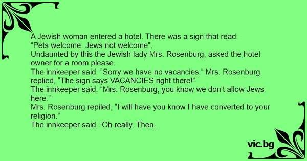 A Jewish woman entered a hotel. There was a sign that read: