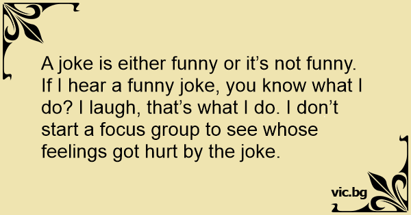 A joke is either funny or it’s not funny. If I hear a funny joke, you know what I do? I laugh, that’s what I do. I don’t start a focus group to see whose feelings got hurt by the joke.