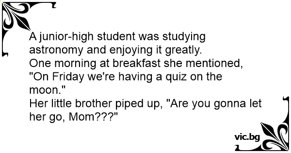 One morning at breakfast she mentioned, "On Friday we're having a quiz on the moon."