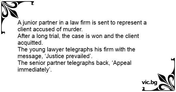 The senior partner telegraphs back, ‘Appeal immediately’.