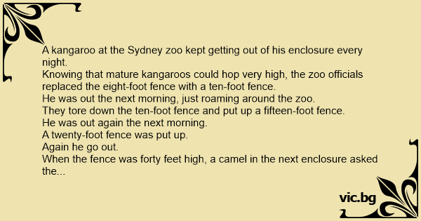 When the fence was forty feet high, a camel in the next enclosure asked the kangaroo,