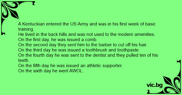 A Kentuckian entered the US Army and was in his first week of basic training.