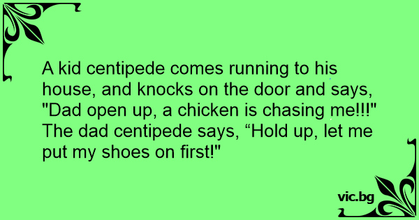 The dad centipede says, “Hold up, let me put my shoes on first!"