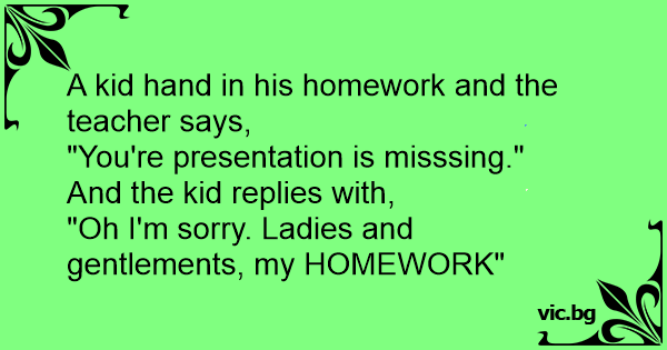 "Oh I'm sorry. Ladies and gentlements, my HOMEWORK"