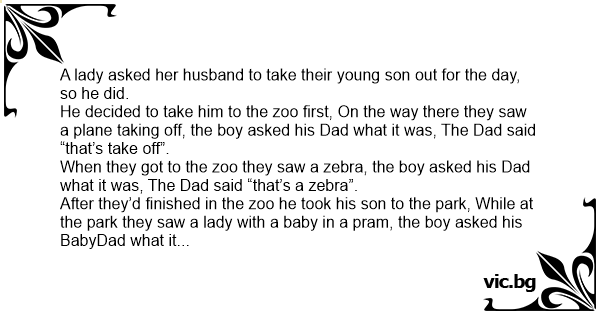 When they got to the zoo they saw a zebra, the boy asked his Dad what it was, The Dad said “that’s a zebra”.