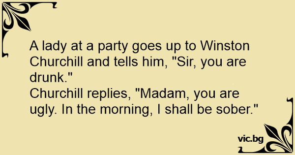 A lady at a party goes up to Winston Churchill and tells him, "Sir, you are drunк."