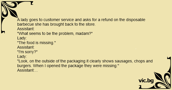 A lady goes to customer service and asks for a refund on the disposable barbecue she has brought back to the store.