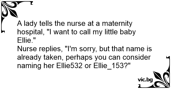 A lady tells the nurse at a maternity hospital, "I want to call my little baby Ellie."