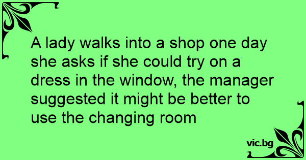 A lady walks into a shop one day she asks if she could try on a dress in the window, the manager suggested it might be better to use the changing room